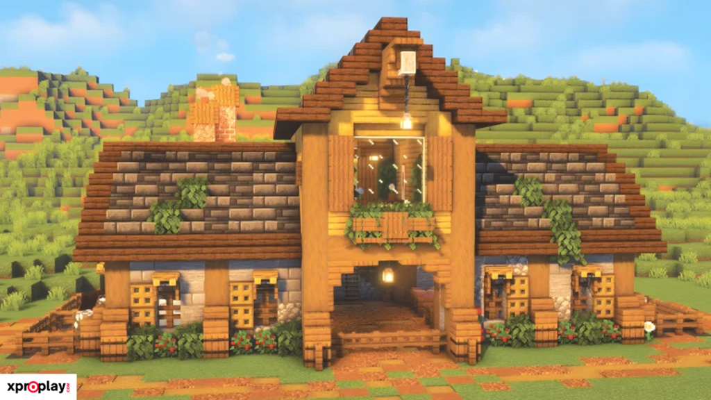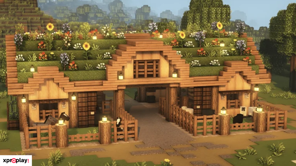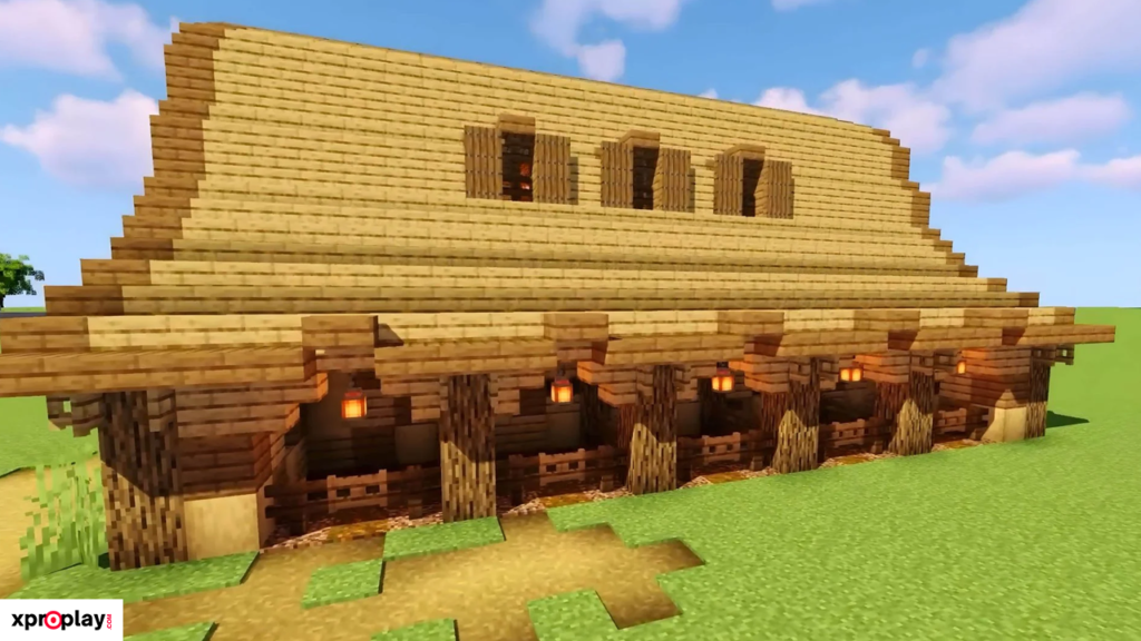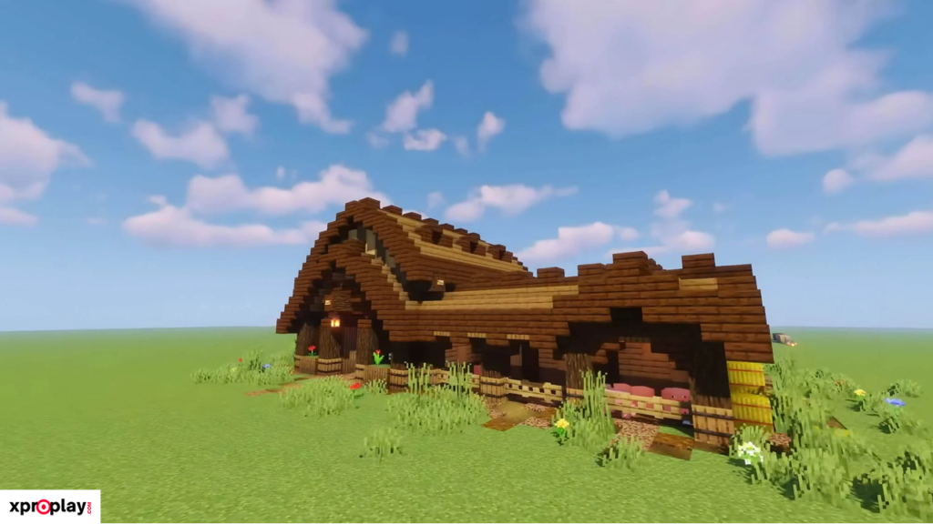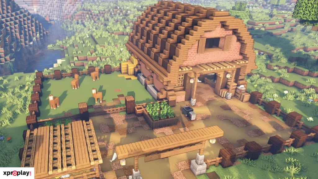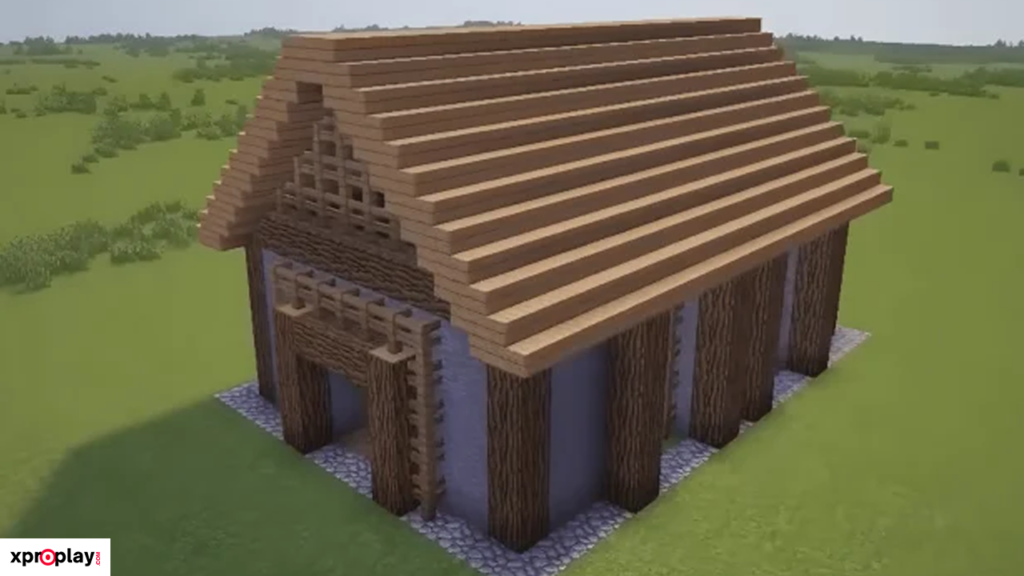 To construct this barn, you’ll need plenty of logs, planks, stairs, and slabs. While the materials required are substantial, the final result is truly worth the effort and gives your Minecraft world a realistic, historic feel.