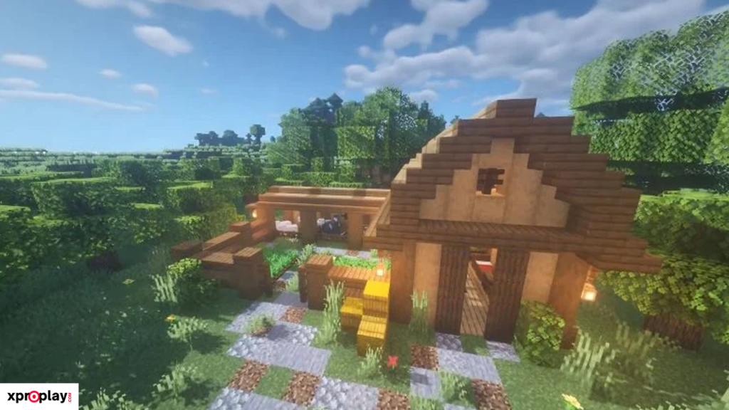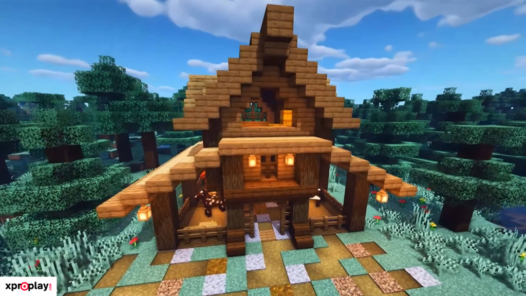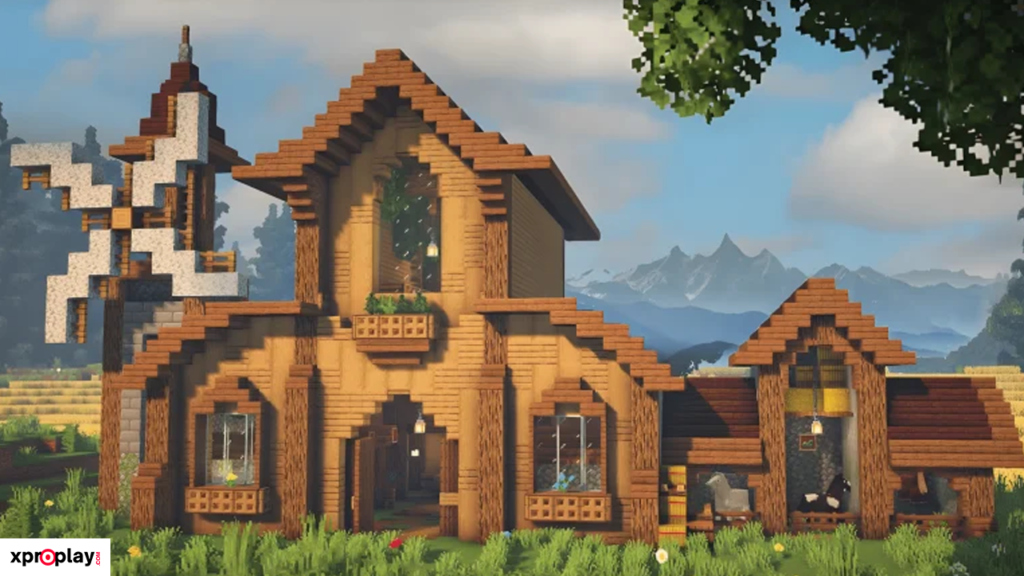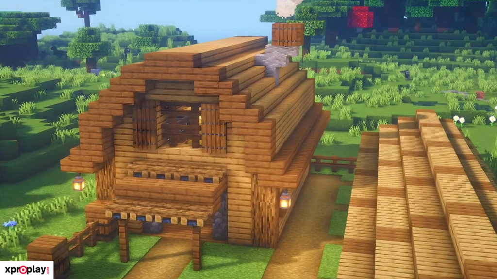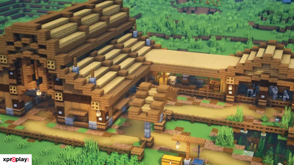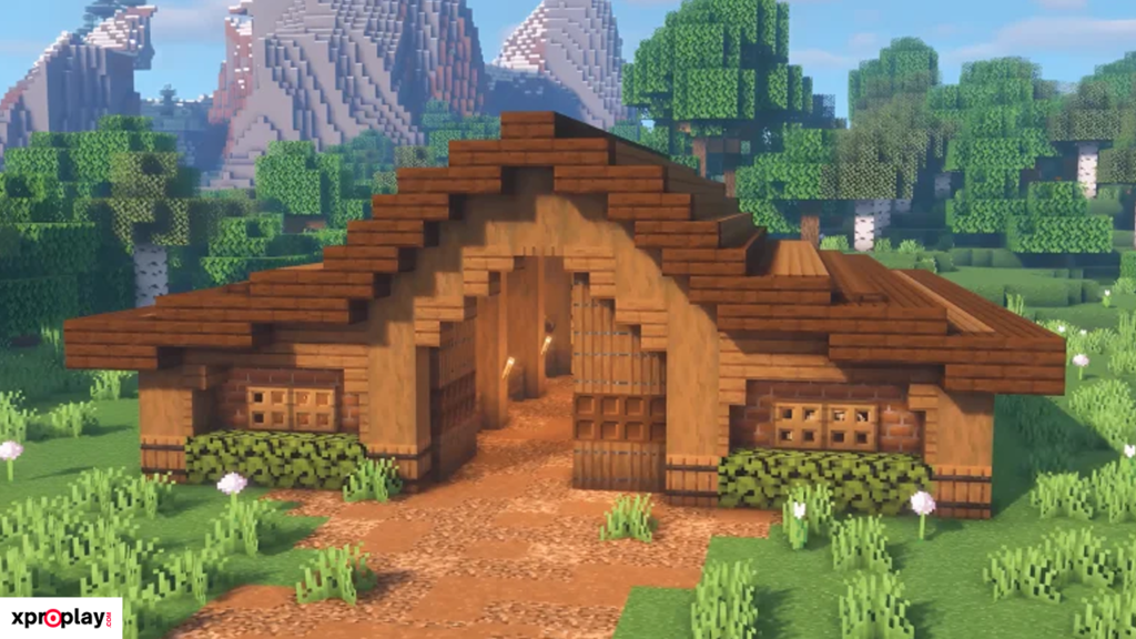 To construct this barn, you’ll need plenty of logs, planks, stairs, and slabs. While the materials required are substantial, the final result is truly worth the effort and gives your Minecraft world a realistic, historic feel.