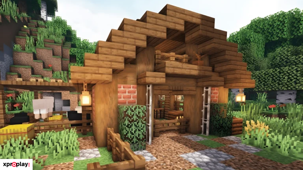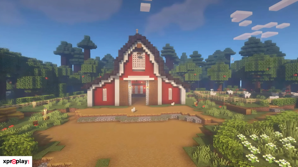 If you’re relatively new to Minecraft, a simple barn design like this one by SheepGG is a great place to start. It can be built on a 23 × 17 block foundation, making it ideal for early Survival gameplay.