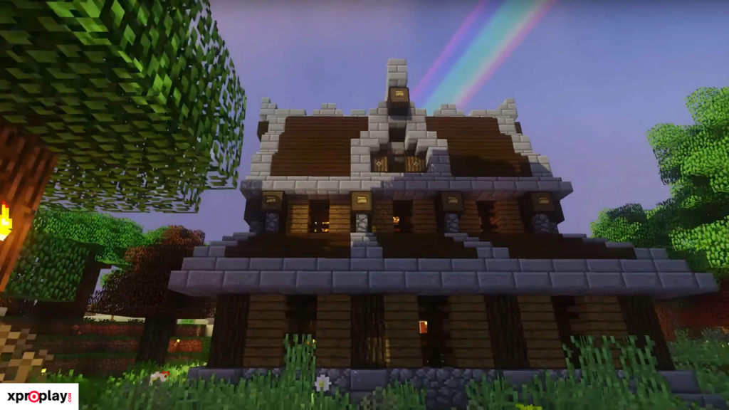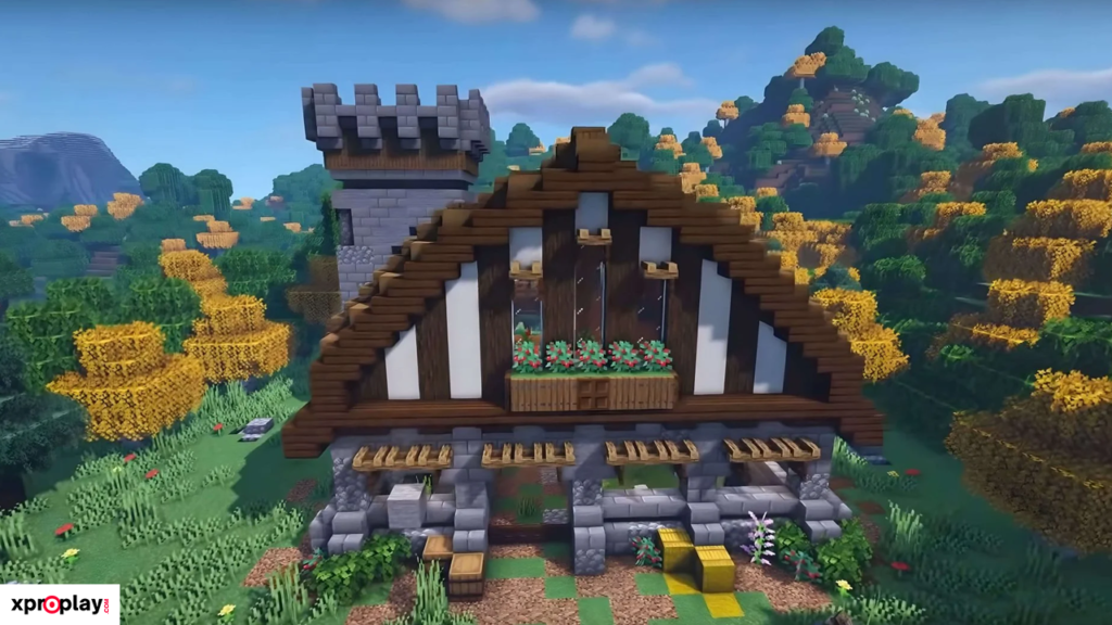 To build this design, you’ll mainly need oak wood, spruce wood, and cobblestone blocks. These materials are easy to gather, even in Survival mode.