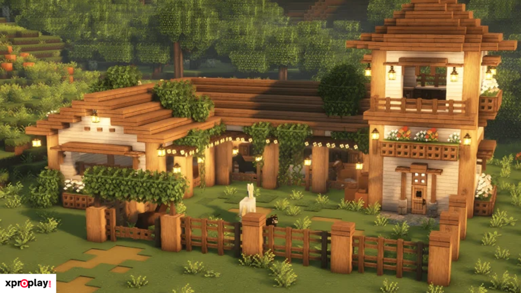 If you love farming and animal husbandry in Minecraft, this Barn and Farm Combo by SidioMC is a must-try. The design includes dedicated farming space right outside the barn, allowing you to grow food for your animals and yourself.
