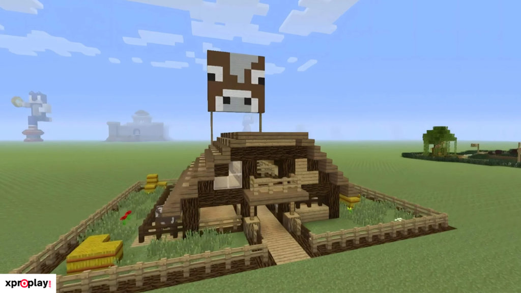 This Cow Barn by TSMC – Minecraft gets its name not only from its purpose, but also from the large cow banner displayed prominently on the structure, making it instantly recognizable.