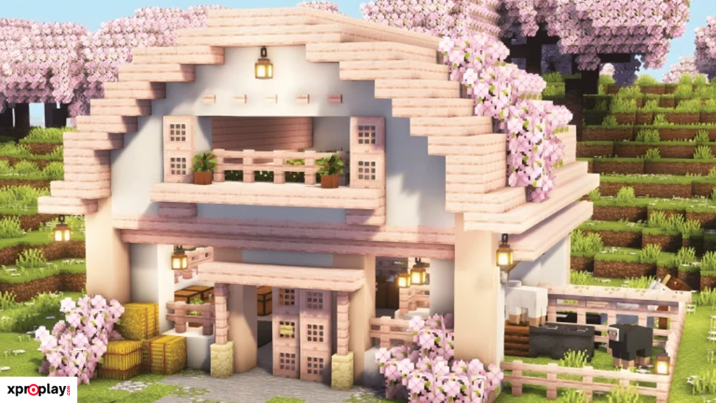 If you love cottagecore or fairycore Minecraft builds, this Fairycore Cherry Blossom Barn by Polar Cat is perfect for adding a whimsical touch to your world. The structure is made using cherry wood, white concrete, and white terracotta, materials that are easy to gather even in Survival mode.